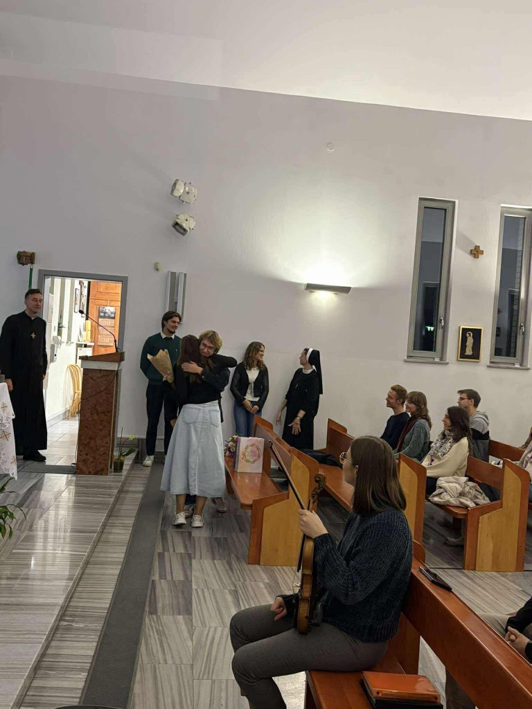 Wczorajszego wieczoru odbyło się pierwsze oficjalne spotkanie naszego duszpasterstwa! Zaczęliśmy w naszym kościele akademickim adoracją Najświętszego Sakramentu, którą poprowadziła nasza ekipa muzyczna, po czym uroczyście przywitaliśmy naszego kolejnego duszpasterza – Siostrę Karolinę oraz Kingę, która została nową animatorką w naszym duszpasterstwie. Następnie przenieśliśmy się do tramwaju, gdzie mogliśmy się zintegrować, szczególnie z tymi którzy dołączyli do nas po raz pierwszy. Lepiej się poznaliśmy i przy tym świetnie bawiliśmy. Po integracji skosztowaliśmy przepysznego tortu wykonanego przez naszą Anię. Serdecznie witamy nowe osoby, których liczba była naprawdę spora. Tramwaj wydawał się troszkę mniejszy niż zwykle. Bardzo nas to cieszy! Mamy nadzieję że odczuliście naszą radość z tego, że jesteście! Jeżeli ktoś nie mógł być obecny wczoraj, serdecznie zapraszamy w następny wtorek!! Każda nowa twarz jest tutaj mile widziana!